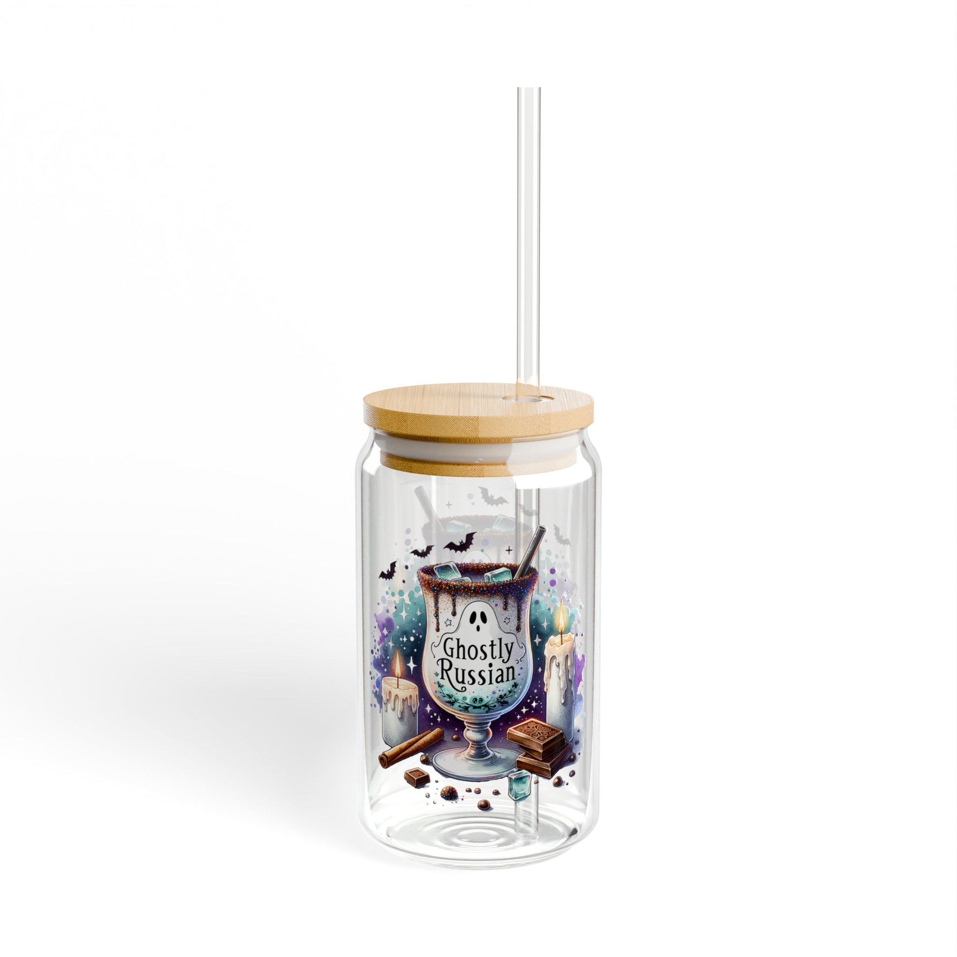 Ghostly Russian Sipper Glass - 16oz Halloween Drinkware with Bamboo Lid & Straw