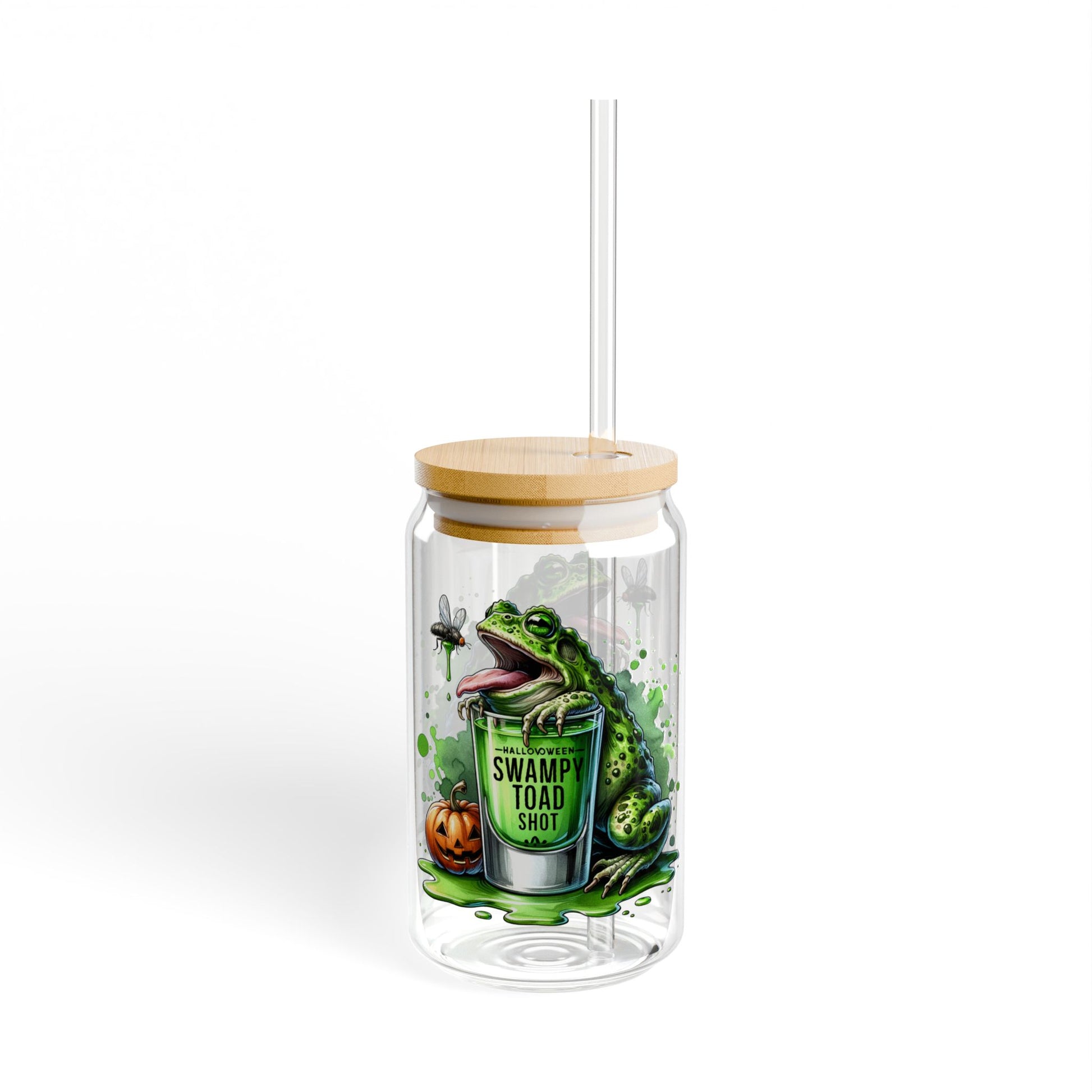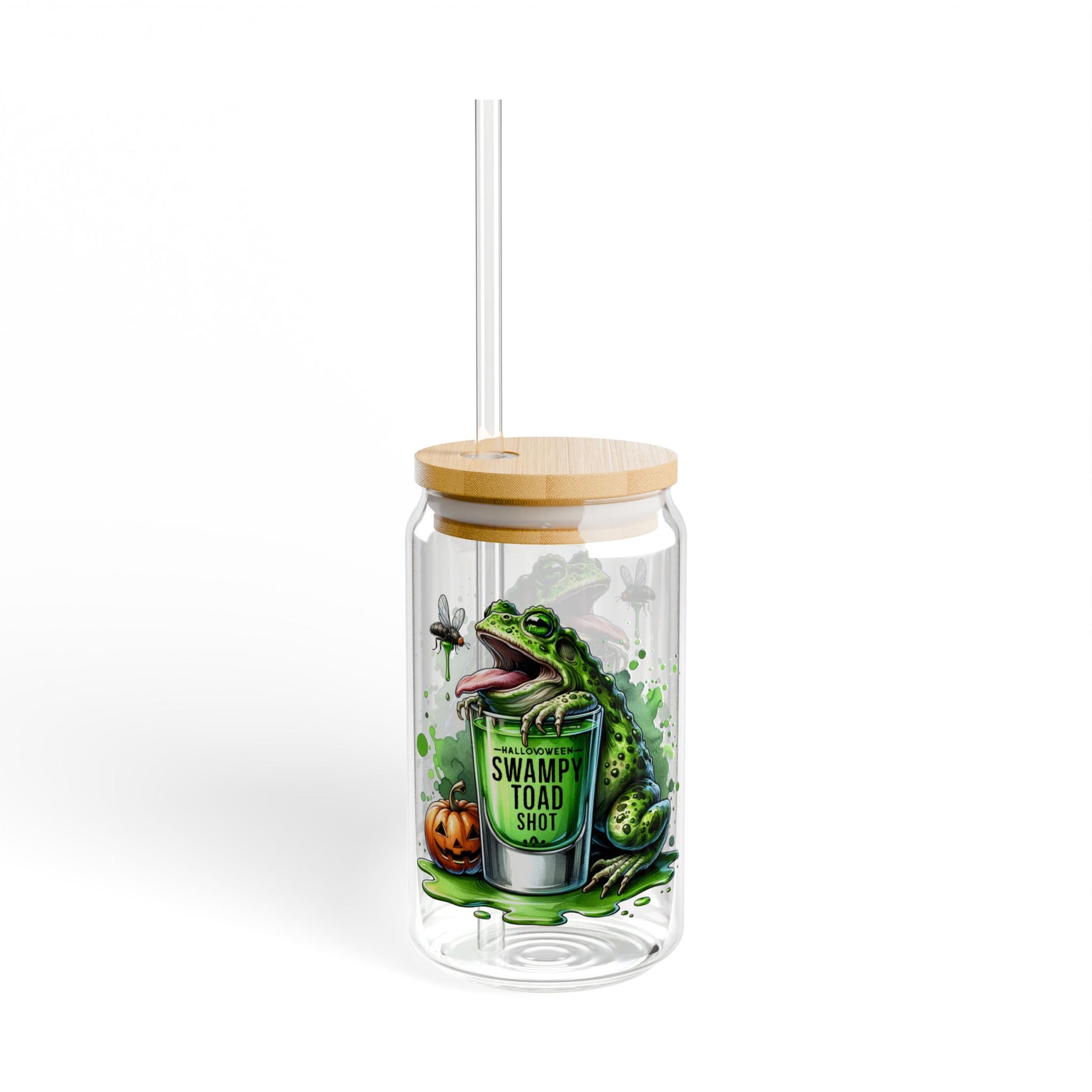 Swampy-Toad Halloween Sipper Glass - 16oz Swampy Toad Design with Straw