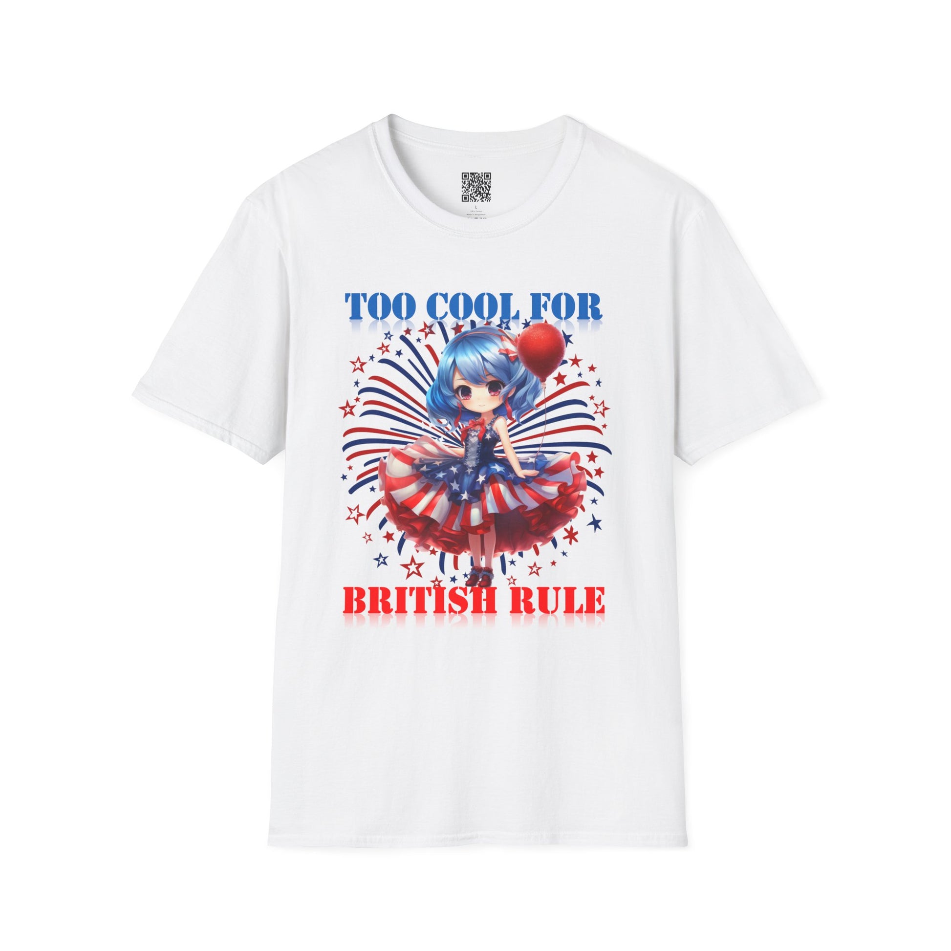 Too Cool For British Rule | Unisex Softstyle T-Shirt - Patriotic Graphic Tee